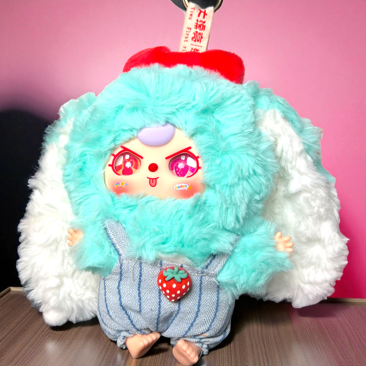 This confirmed Baby Three Macaron V2 – Mint Rabbit (Strawberry Overalls) pendant features the rare dual-design eyes — one with a...